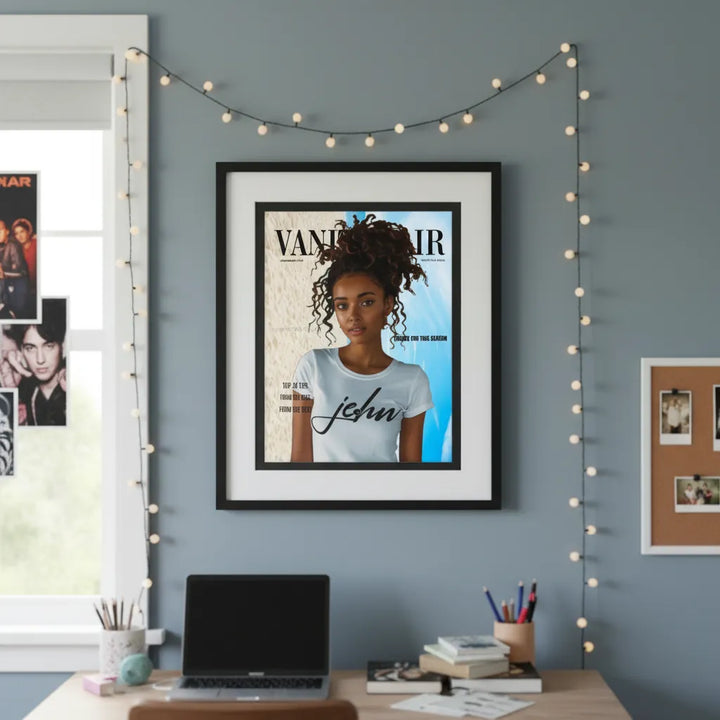 Make a statement in any room with this stylish faux fun magazine cover. Decorate the room with the you you want to me and the headline you want to say.